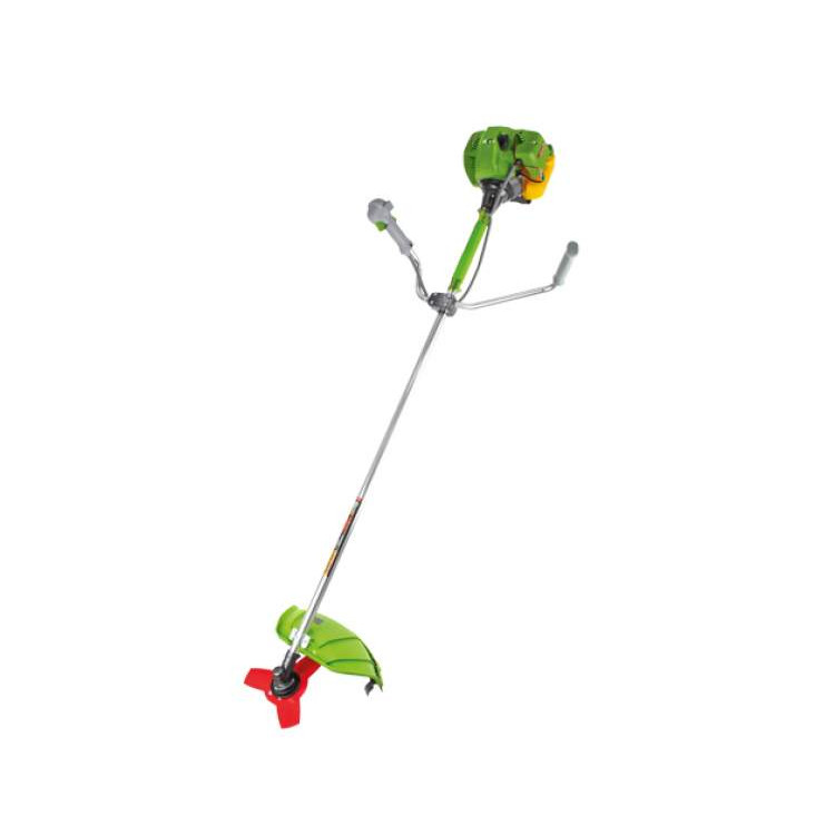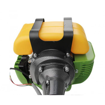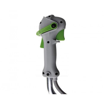 Коса имеет сравнительно небольшой вес (8 кг) и оптимальную высоту штанги, что делает ее использование максимально комфортным. Устройство надежно фиксируется на плечах при помощи удобного ремня. Эргономичная двусторонняя рукоятка с пусковым рычагом обеспечивает простое управление бензокосой.