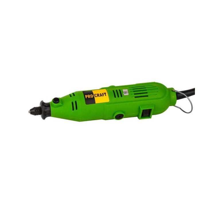 Гравер Procraft PG400 set 216 является профессиональным инструментом. В нем стоит двигатель на 400 Ватт, что позволяет развивать частоту вращения от 8000 до 30000 об/мин. На гравере имеется регулятор частоты оборотов, что очень актуально при работах, где необходима высокая точность. Особая конструкция делает приятных хват сверху или снизу.