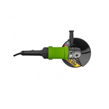 Машинка оснащена двигателем мощностью 2300 Вт. Он обеспечивает шпинделю скорость вращения 6000 оборотов в минуту. В комплекте поставляется защитный кожух, который можно отрегулировать в нужном оператору положении. Его использование повышает безопасность при проведении работ.